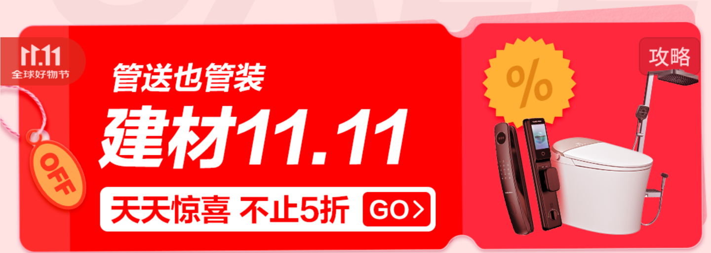 京东家具 & 建材 11.11 开门红今晚 20 点开启:点此前往家具会场;点此前往建材会场。