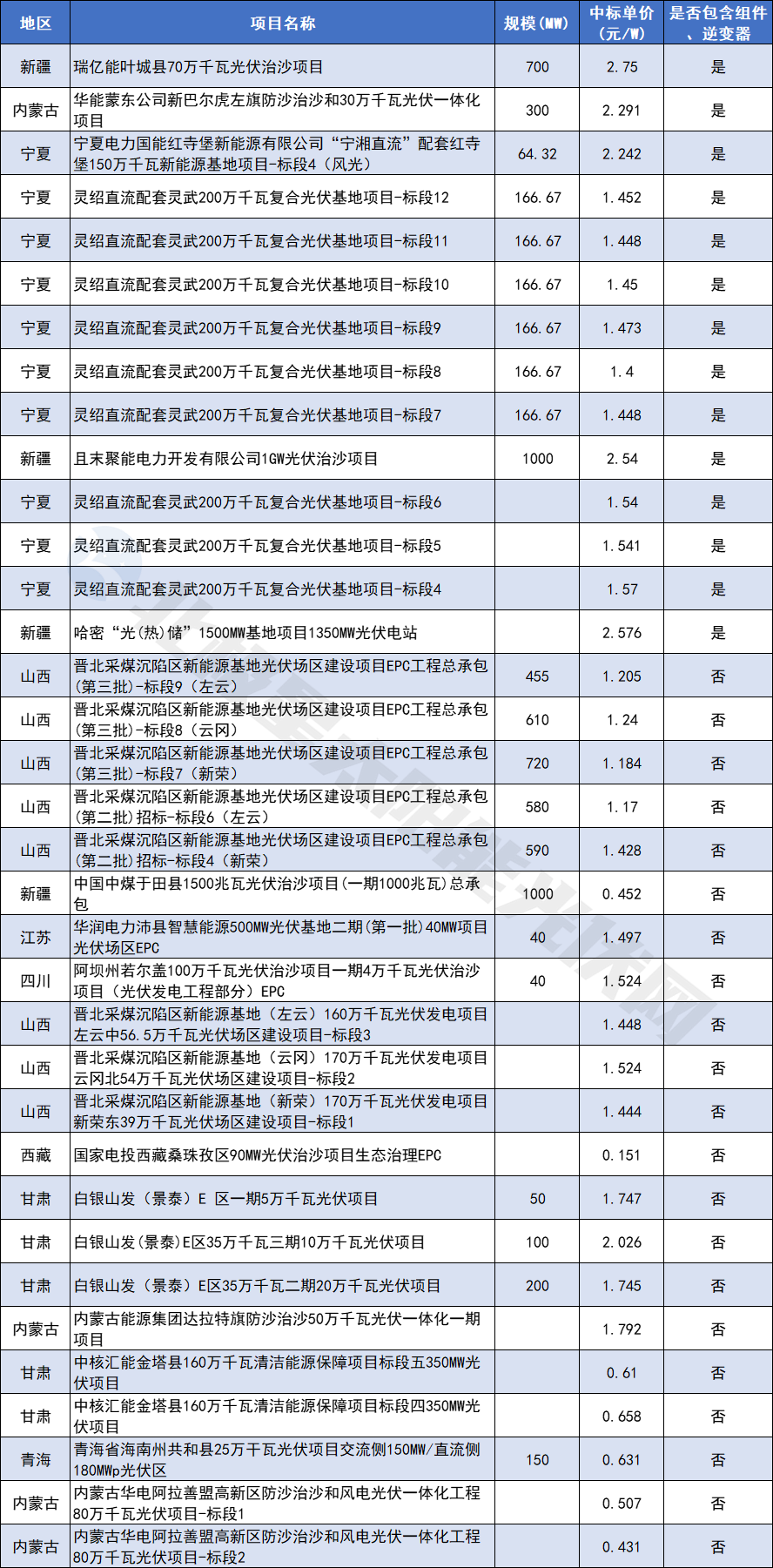 这点从在EPC招投标就可以看出。据北极星太阳能光伏网统计:过去一年,“沙戈荒” EPC 电站项目的中标价格分别为:包含组件、逆变器的EPC电站平均中标价格在1.83元/W,最高为2.75元/W,最低为1.4元/W;不包含组件、逆变器电站平均中标价格在1.16元/W,最高为2.02元/W,最低甚至仅为0.43元/W。两组价格均远低于普通地面光伏电站的EPC水平,直观反映出“沙戈荒”项目在成本竞争上的激烈程度,也印证了开发企业对“降本”的要求。