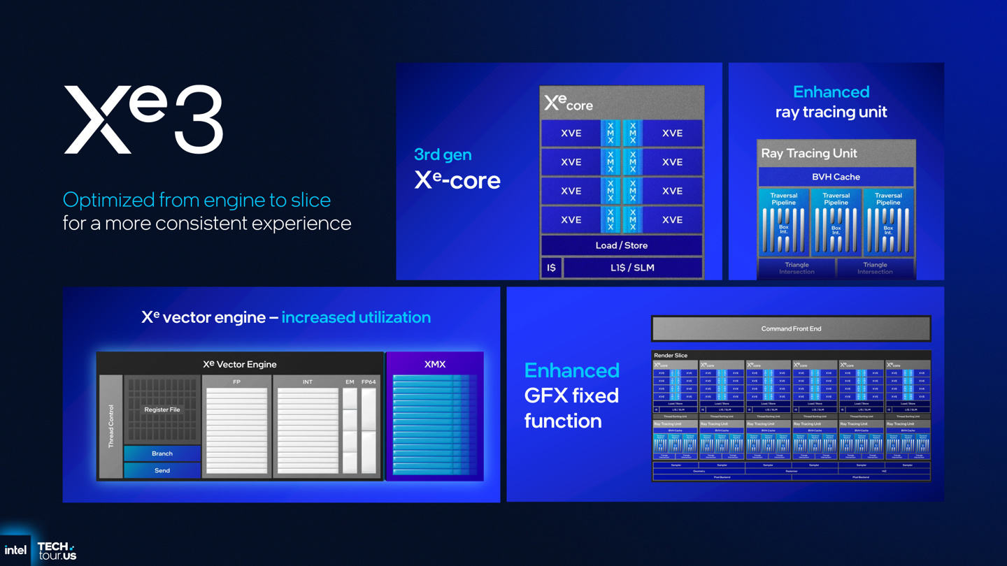 alixixi 10 月 10 日消息,英特尔在预览介绍酷睿 Ultra 300 "Panther Lake" 处理器的同时也分享了有关该芯片首发的 Xe3 图形架构的情况。