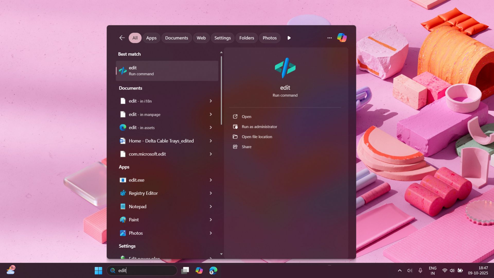 alixixi 10 月 10 日消息,科技媒体 Windows Latest 昨日(10 月 9 日)发布博文,报道称微软已确认在未来的 Windows 11 版本中,将预装命令行文本编辑器“Edit”,目前在 Canary 频道 Build 27965 预览版中已默认内置。