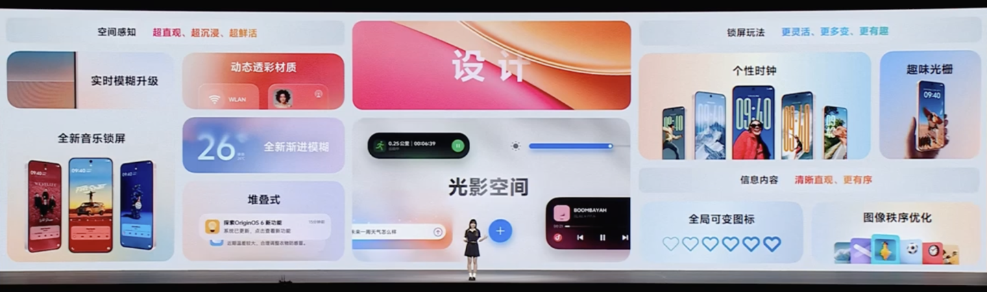 同时,新系统采用了“动态透彩材质”,基于自研的“动态背景色”算法,强化彩色部分的表达,同时抑制黑色区域的强度,让文字信息保持清晰的同时,背景质感的表现大大提升。并引入“三层着色技术”提亮色彩,并借助“抗水波纹算法”平滑像素,打造更真实、更细腻的实时效果。