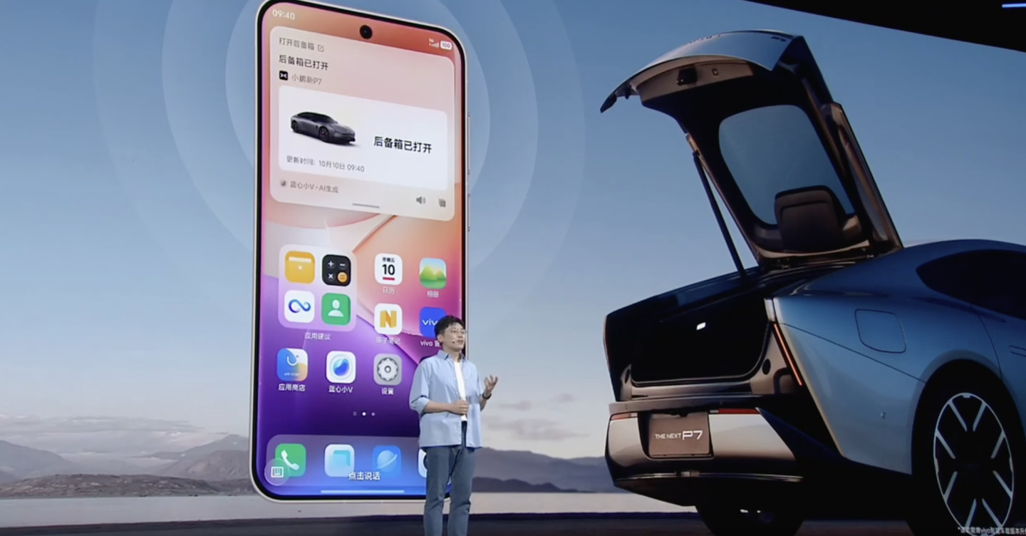 官方同时透露,全新 OriginOS 6 系统进一步打通手机与车机,在全新小鹏 P7 上除了镜像投屏,还上线首发的小 V 控车。通过语音的深度融合,将车机和手机的语音助手打通。例如,在车外呼唤小 V,人在家里也能轻松地一句话备车;在车内呼唤小 P 来处理手机上的任务:回复手机消息、一句话把手机上收到的地址发到车机上导航等。