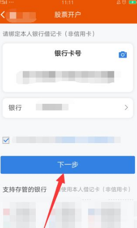 7、最后绑定自己的银行卡,点击【下一步】完成开户流程,等待审核结果即可。