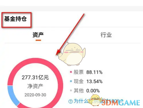2、在详情页下拉找到“基金持仓”开始查看资产分布比例