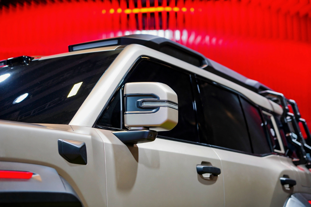 作为一款硬派新能源越野车,“红旗越野”配备了非承载式车身和三把差速锁,还搭载了自研的矢量控制四电机,拥有 18500 牛米的扭矩以及 4 秒级的零百加速,支持 5 种改装方式并预留 20 余处改装端口。