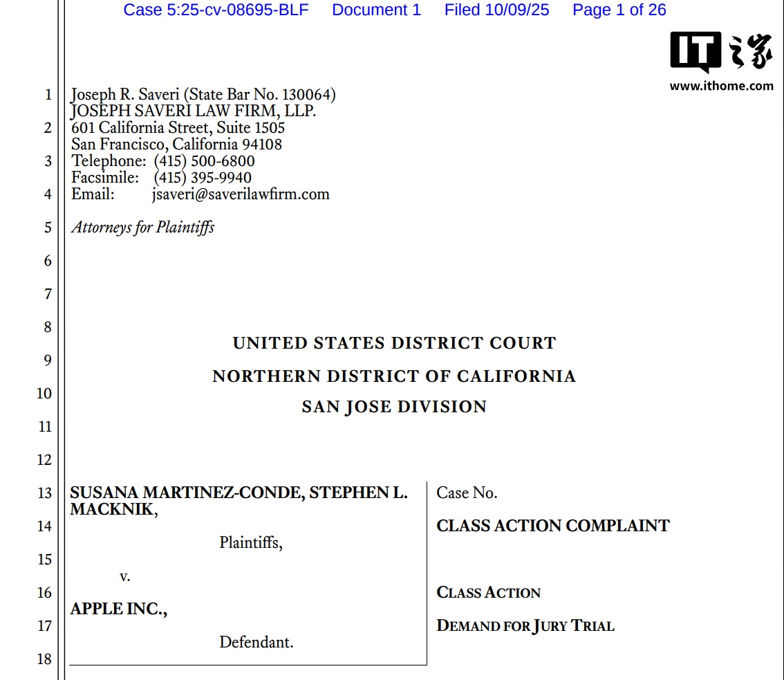 苏珊娜・马丁内斯-康德(Susana Martinez-Conde)和斯蒂芬・麦克尼克(Stephen Macknik)两名来自纽约州立大学健康科学大学的学术作者已对苹果公司发起集体诉讼。