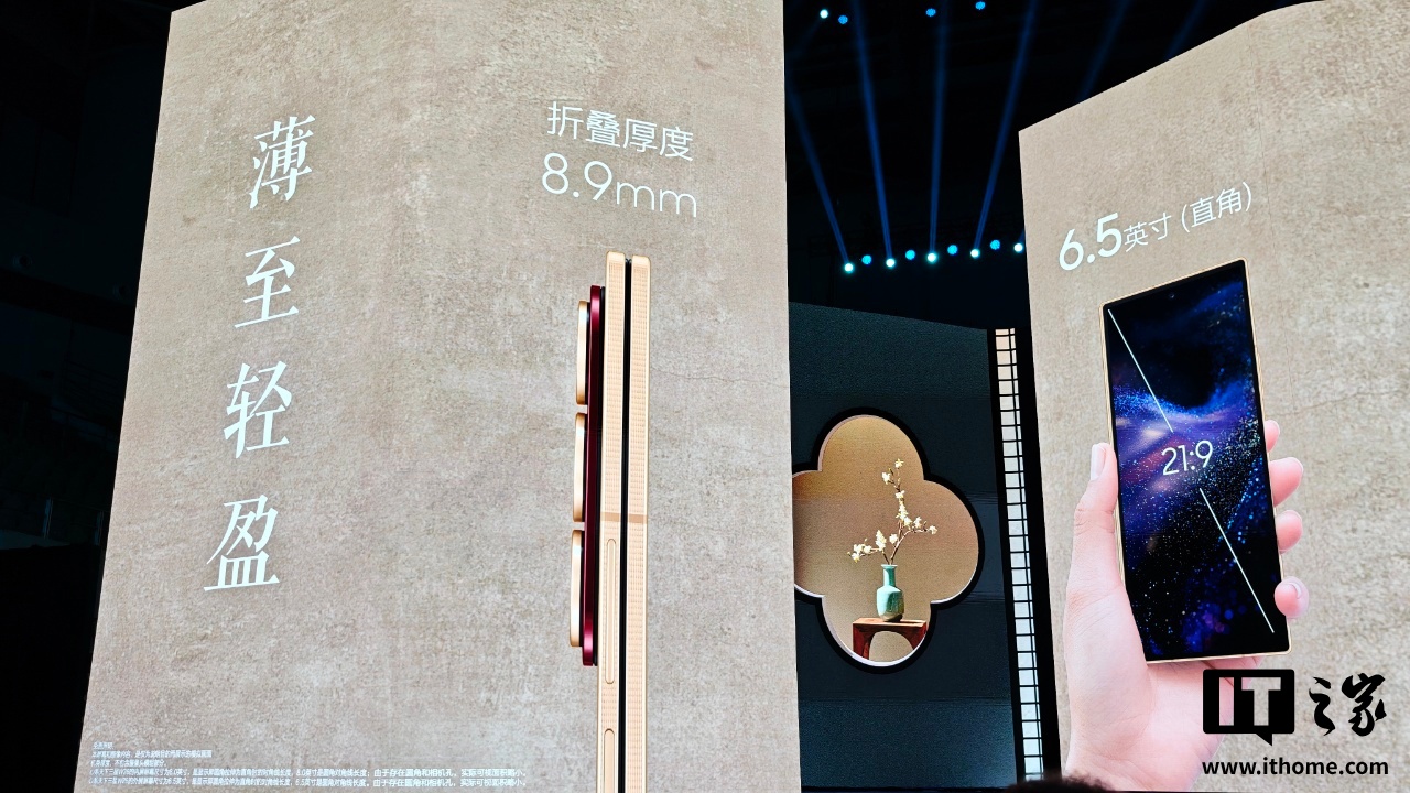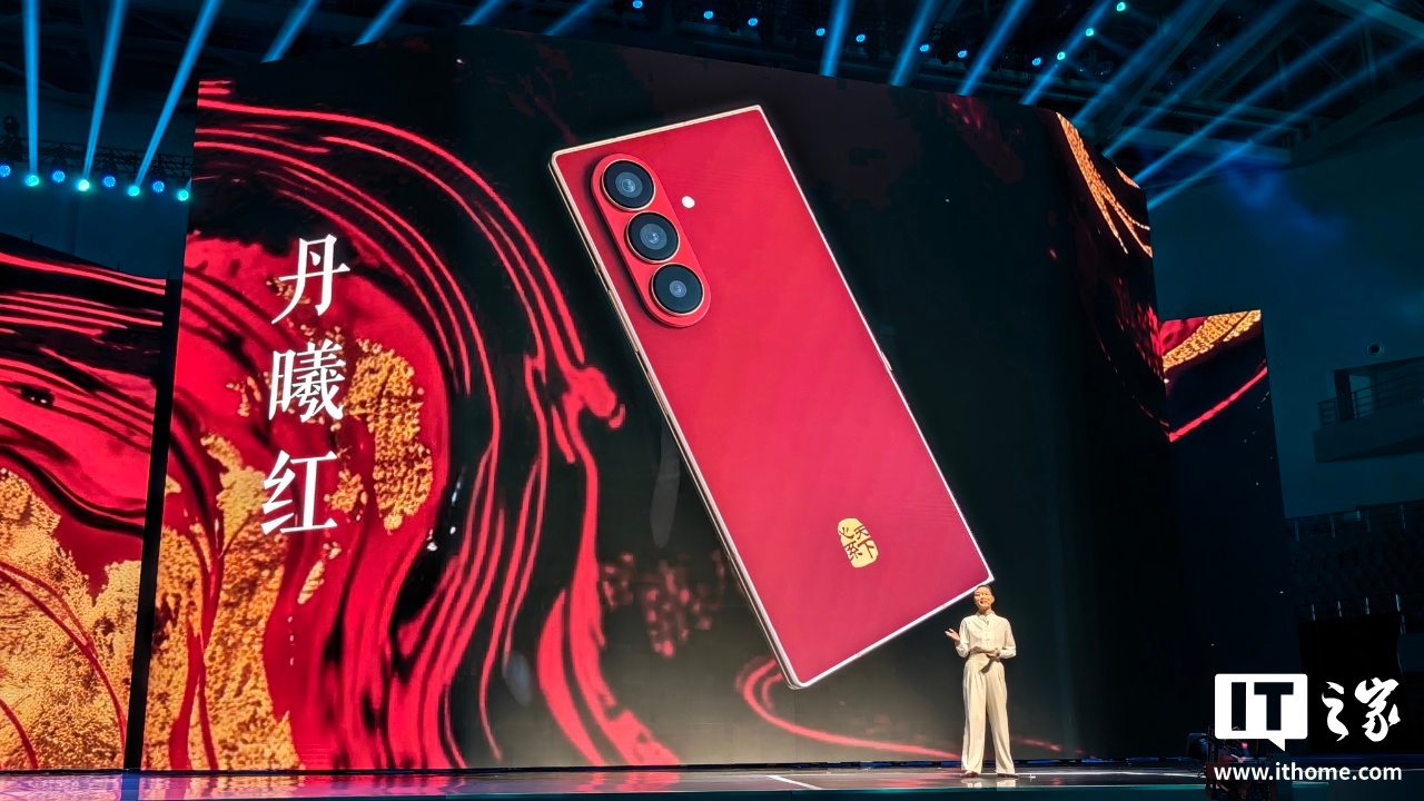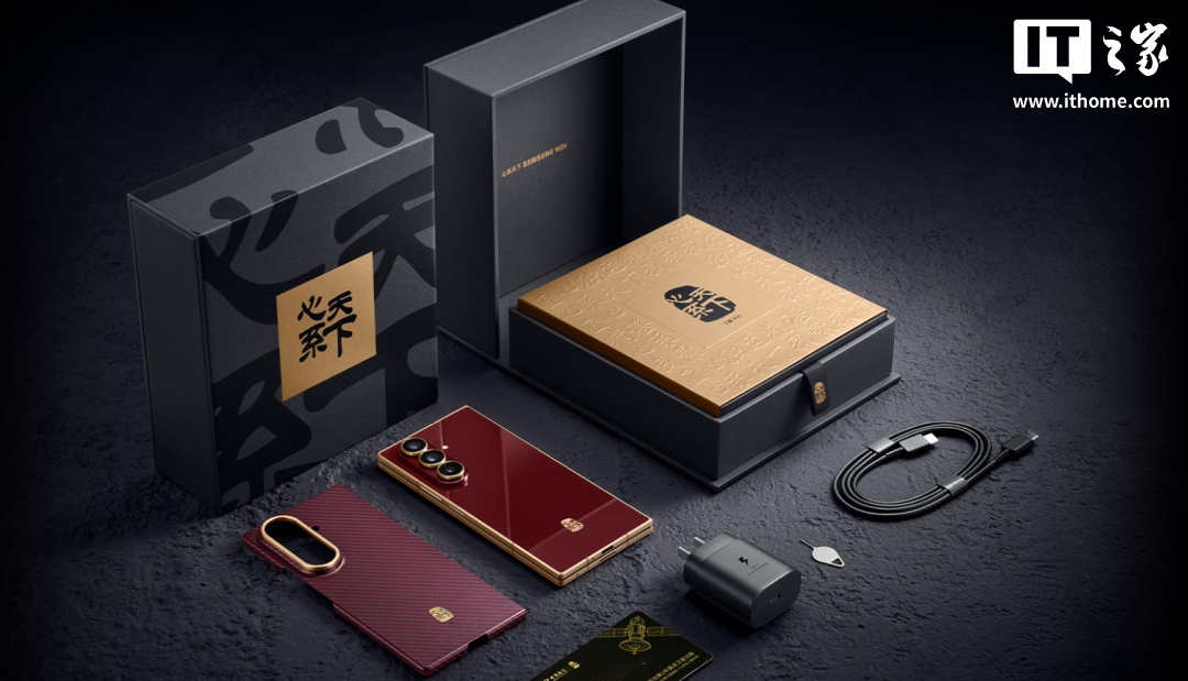 三星 W26 采用全新的丹曦红 / 玄曜黑配色和鎏金相机模组,以及背后类似镀金的心系天下徽章,除此之外整体实际上和 Fold 7 区别并不大。