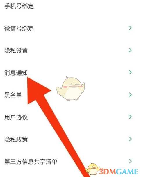 3、在设置界面里,点击消息通知。
