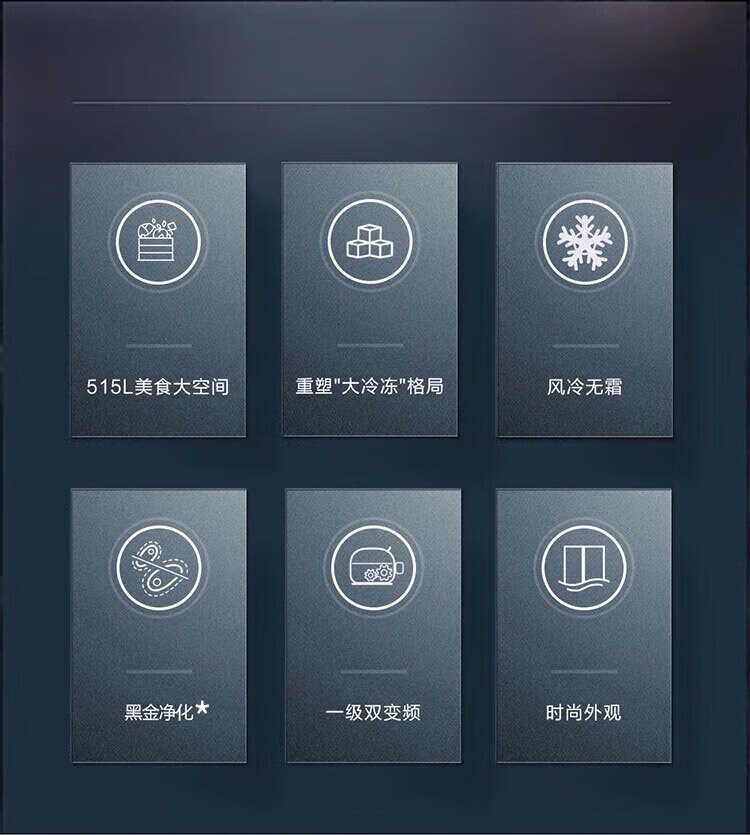 515L 大容量 + 265L 冷冻室,一级能效 + 双变频技术,综合耗电量约 0.89 度 / 天,双循环制冷 + 风冷无霜技术,内置除菌净味功能,保鲜效果好。