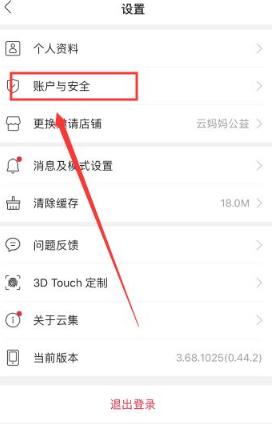 3、在设置页面中,点击【账户与安全】