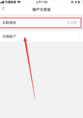 4、进入账户与安全,如下图红标位置所示,点击【关联微信】