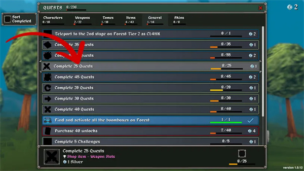 完成 25 个任务后将收到通知,完成后前往商店,即可再携带一个武器槽,只需 25 银币。