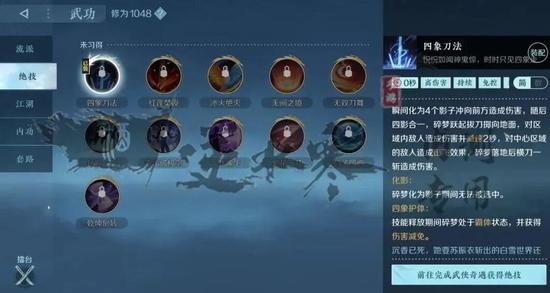 11、 四象刀法:瞬间生成四影冲击敌方,中心敌人会受到击飞效果。