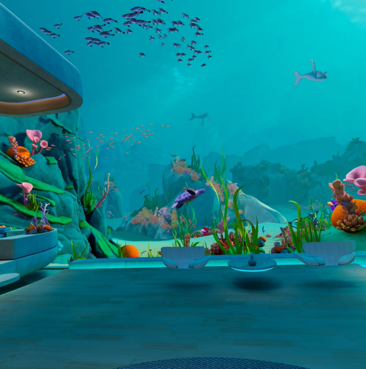新的沉浸式主界面为统一的核心环境,提供四种背景场景可选:Horizon Central(中心城)、Midnight(午夜)、Valley(山谷)和 Oceanarium(海洋馆)。用户可通过左手 Touch 控制器的菜单按钮进入设置并切换场景。新主界面不仅整体视觉质量显著提升,光照效果也会随所选场景动态变化。