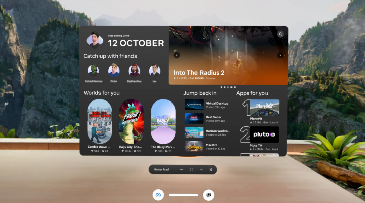 alixixi 10 月 13 日消息,Meta 今日正式向所有支持的 Quest 头显设备推送 Horizon OS v81 系统更新。本次更新引入了基于全新 Horizon Engine 打造的“沉浸式主界面”(Immersive Home)、2D 窗口持久锚定功能、QuickPlay 快速启动技术等多项重要升级。