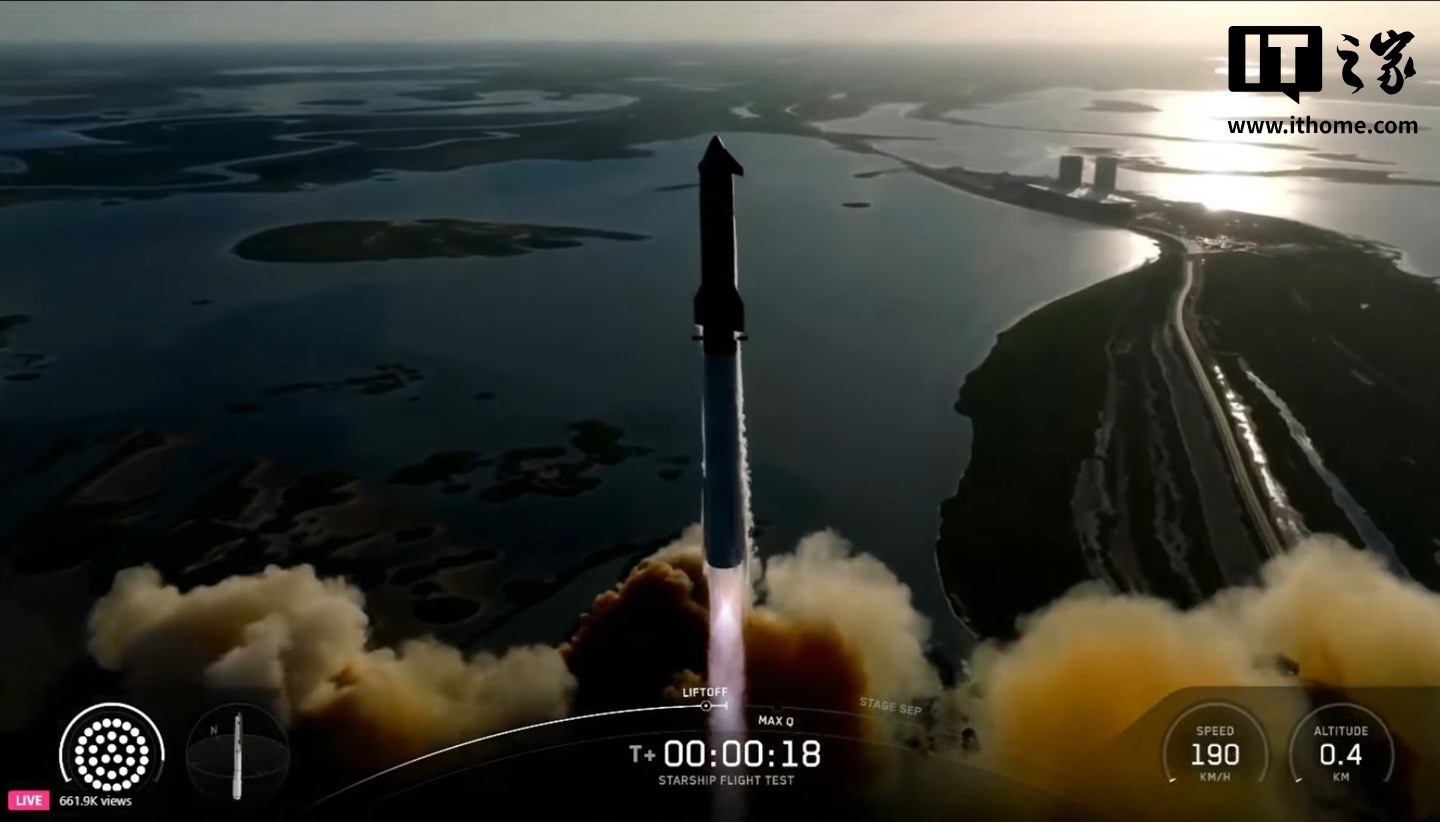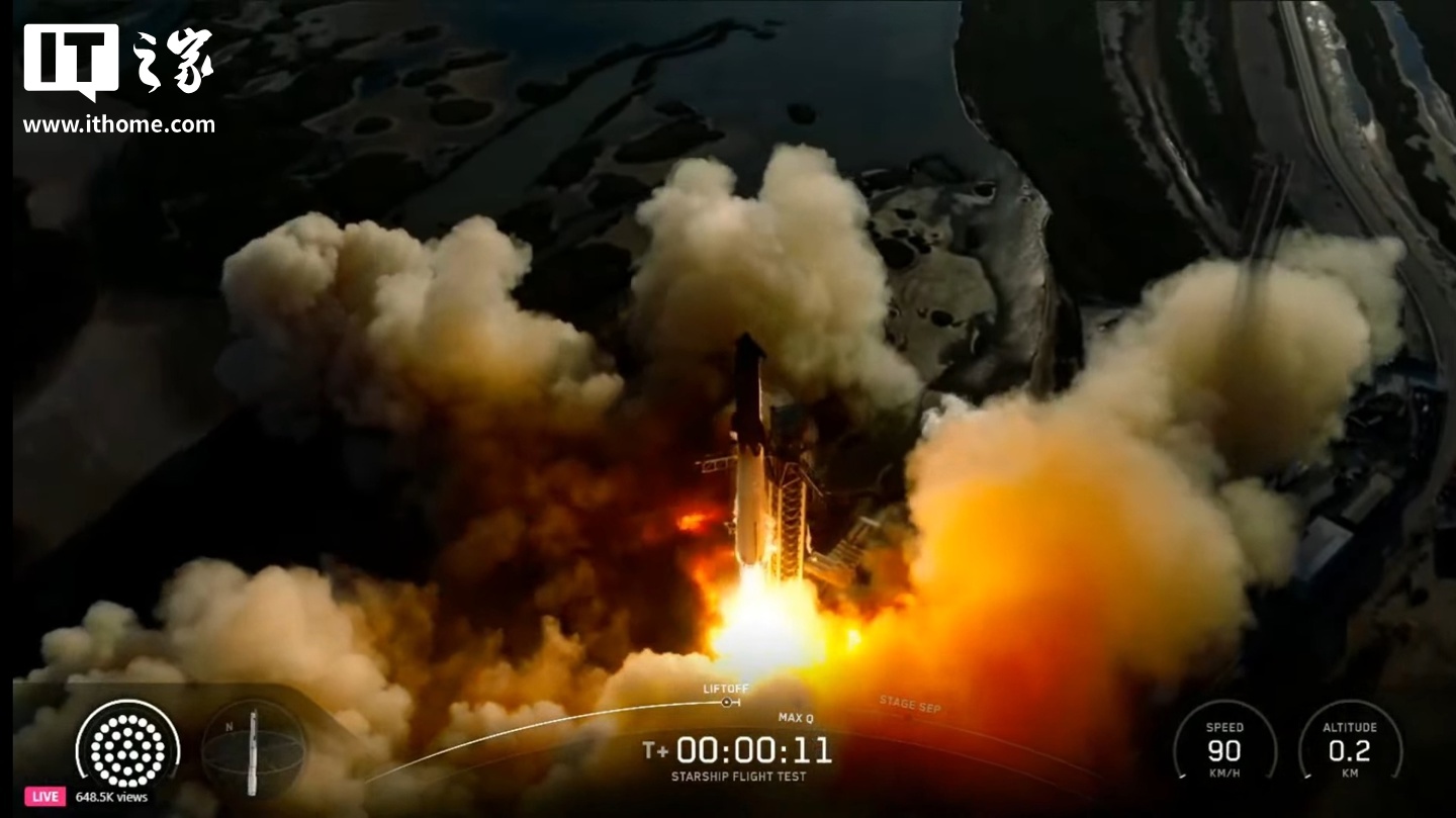 alixixi 10 月 14 日消息,SpaceX 新一代重型运载火箭“星舰”于美国中部时间 13 日 18 时 23 分(alixixi注:北京时间 14 日 7 时 23 分)从得克萨斯州发射升空,最后成功完成星舰第十一次试飞。此次任务对助推器新型着陆燃烧方案、飞船返航轨迹、飞船隔热系统耐受性等关键技术进行了实验和验证。火箭助推器落入墨西哥湾附近海域,不返回发射场回收。飞船最终在印度洋溅落。值得一提的是,这是星舰 V2 版本的最后一次发射。