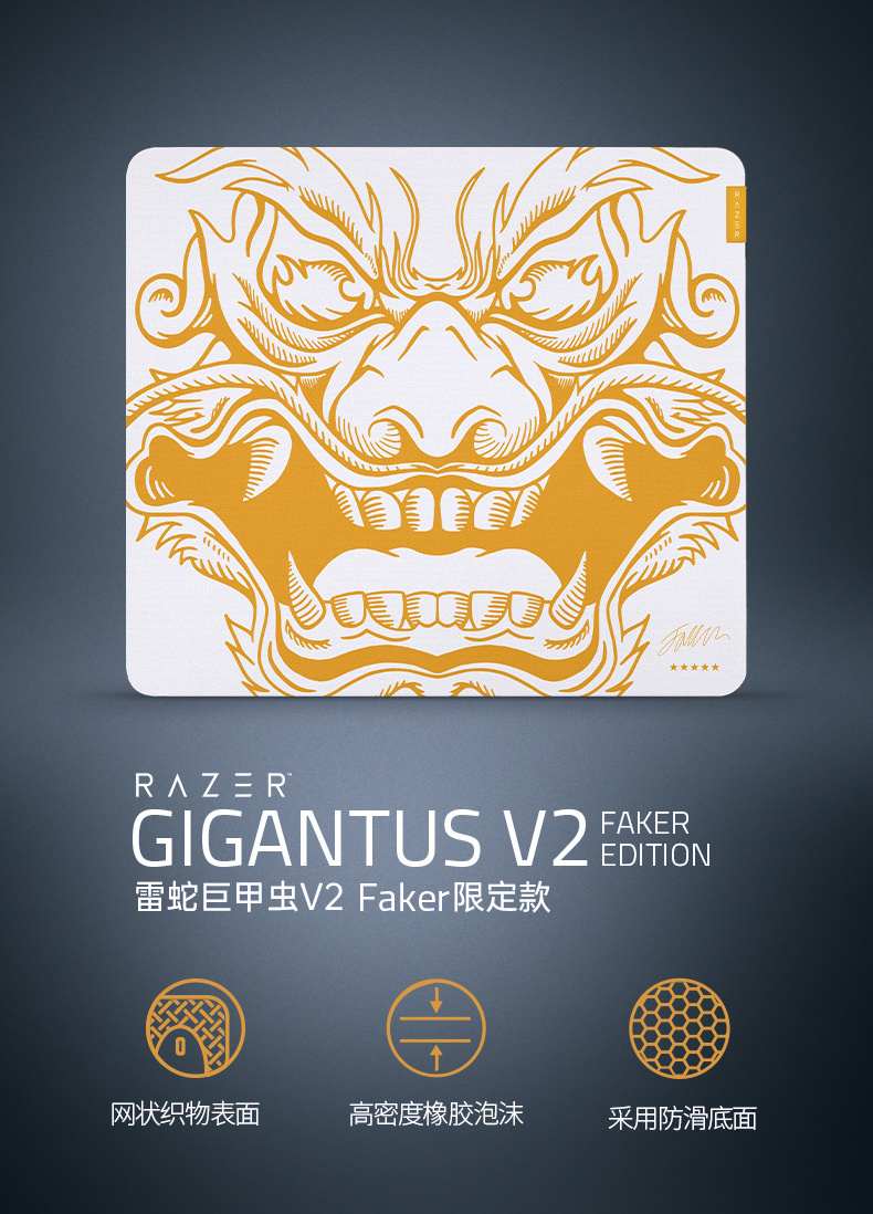 如图所示,雷蛇巨甲虫 V2 Faker 限定版采用了网状纹理的织物表面,同时融入 Faker 大魔王标志性纹理元素。