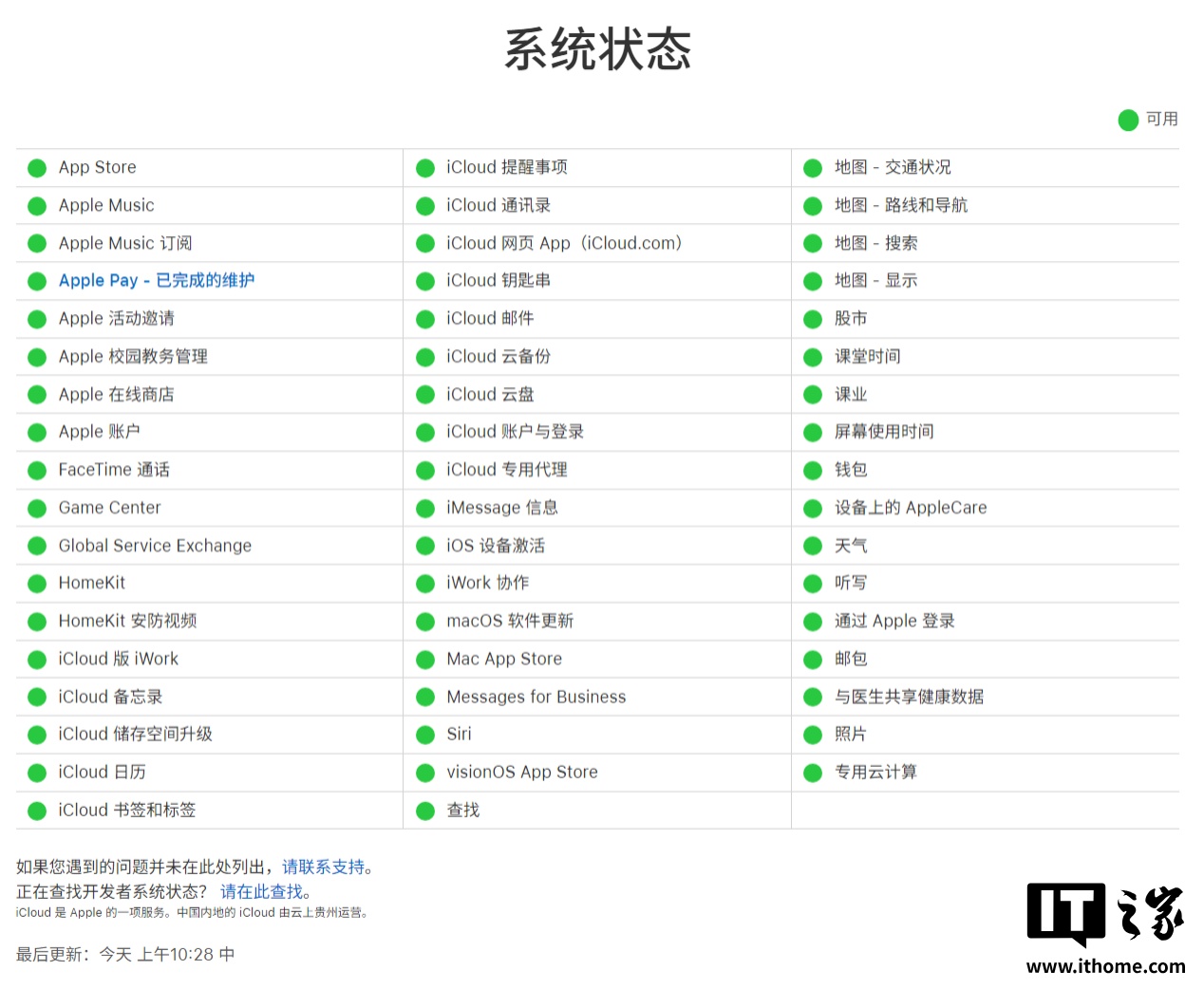 alixixi查询苹果系统状态页面,目前所有服务均显示可用。