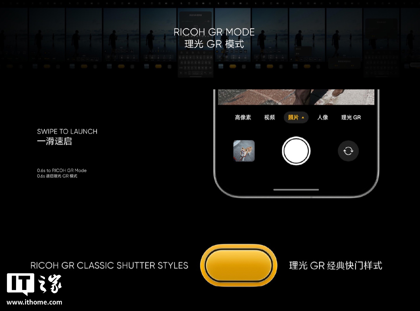 此外,该机相机 App 匹配专属 Logo 与 GR 风格界面,支持理光 GR 的“快拍对焦模式”、沉浸式取景模式(线框),提供 5 款定制化水印模版,同步匹配 Film-tone 算法,实现理光 GR“胶片感”调色,提供正片 / 负片 / 单色 / 高对比度黑白(俗称的“森山大道”模式)等。