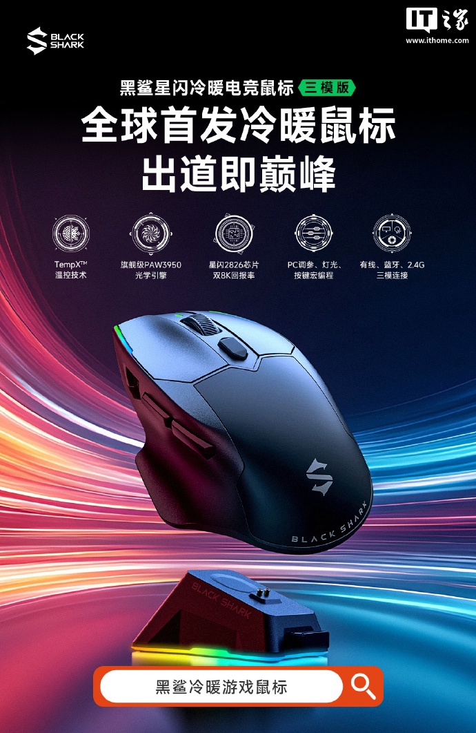 alixixi 10 月 14 日消息,黑鲨宣布星闪冷暖电竞鼠标(三模版)正式开售,这也是全球首款冷暖鼠标,首发价 459 元,另有一款三体联名版定价 499 元。