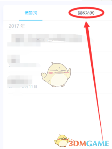 6.进入便签页面后,点击回收站,就可以看到被删除的便签