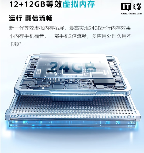此外,这款手机还配备 NFC 功能,支持录入小区门卡、碰一碰支付等场景,系统还支持应用六开,搭配 12GB 真实内存 + 12GB 虚拟内存,号称能组成 24GB 内存,拥有 256GB 存储空间。