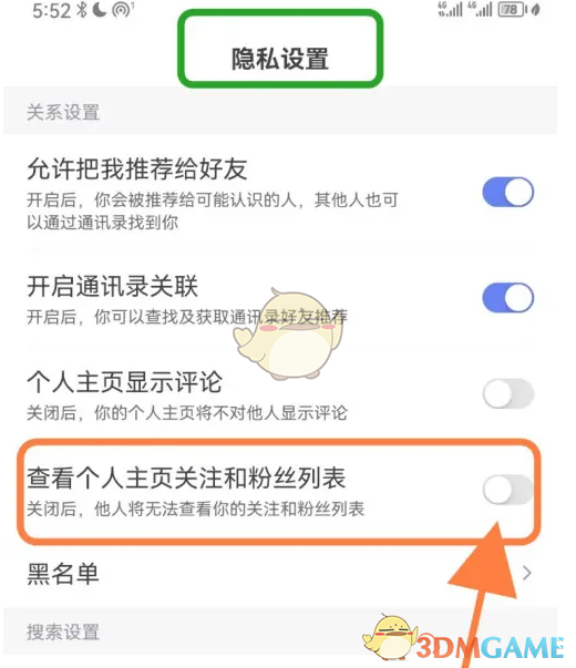 3、在隐私设置界面中,把【查看个人主页关注和粉丝列表】功能后的开关,关闭即可。