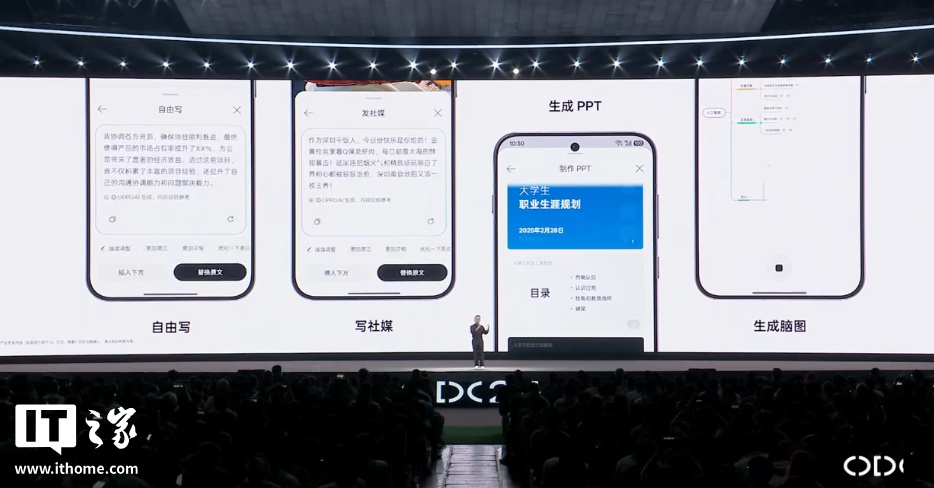 AI 笔记助手升级为“全局 AI 写作”,不仅能写文案,还能将文案一键生成 PPT 和脑图。此外,ColorOS 16 还提供“AI 帮回复”功能,自动识别和分析上下文对话,给出高情商回复话术。