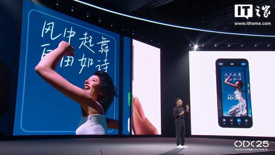 ColorOS 16 的锁屏界面迎来“AI 灵感主题”,支持自由拖拽改变时钟大小、粗细,以及搭配不同的小组件;“AI 实况壁纸”支持静态图片自动转换为更具生命力的动图,“AI 灵感文案”通过 AI 匹配符合情绪的文案。