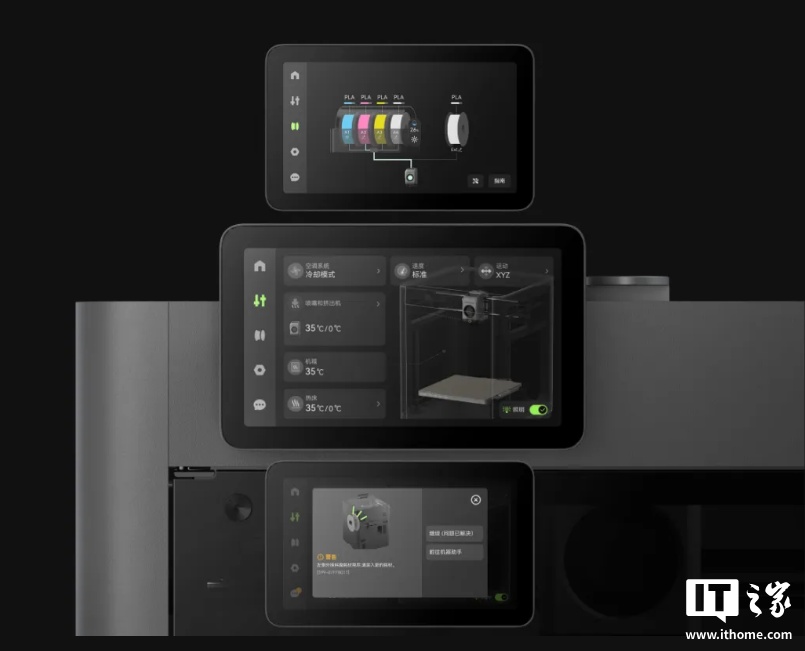 拓竹 P2S 还搭载自适应空气循环系统,与循环热风的传统冷却系统不同,P2S 的自适应空气循环系统可直接从机箱外吸入冷空气,提高冷却效率。打印低温耗材时可以关上 P2S 的舱门,而无需担心悬垂质量问题或堵头。