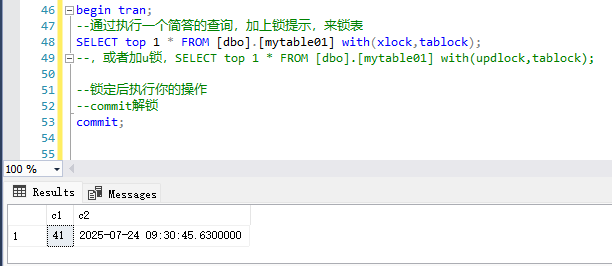 最近有个需要求,需要在SqlServer中锁定一张表后,然后搞一些事情,完成后解锁。