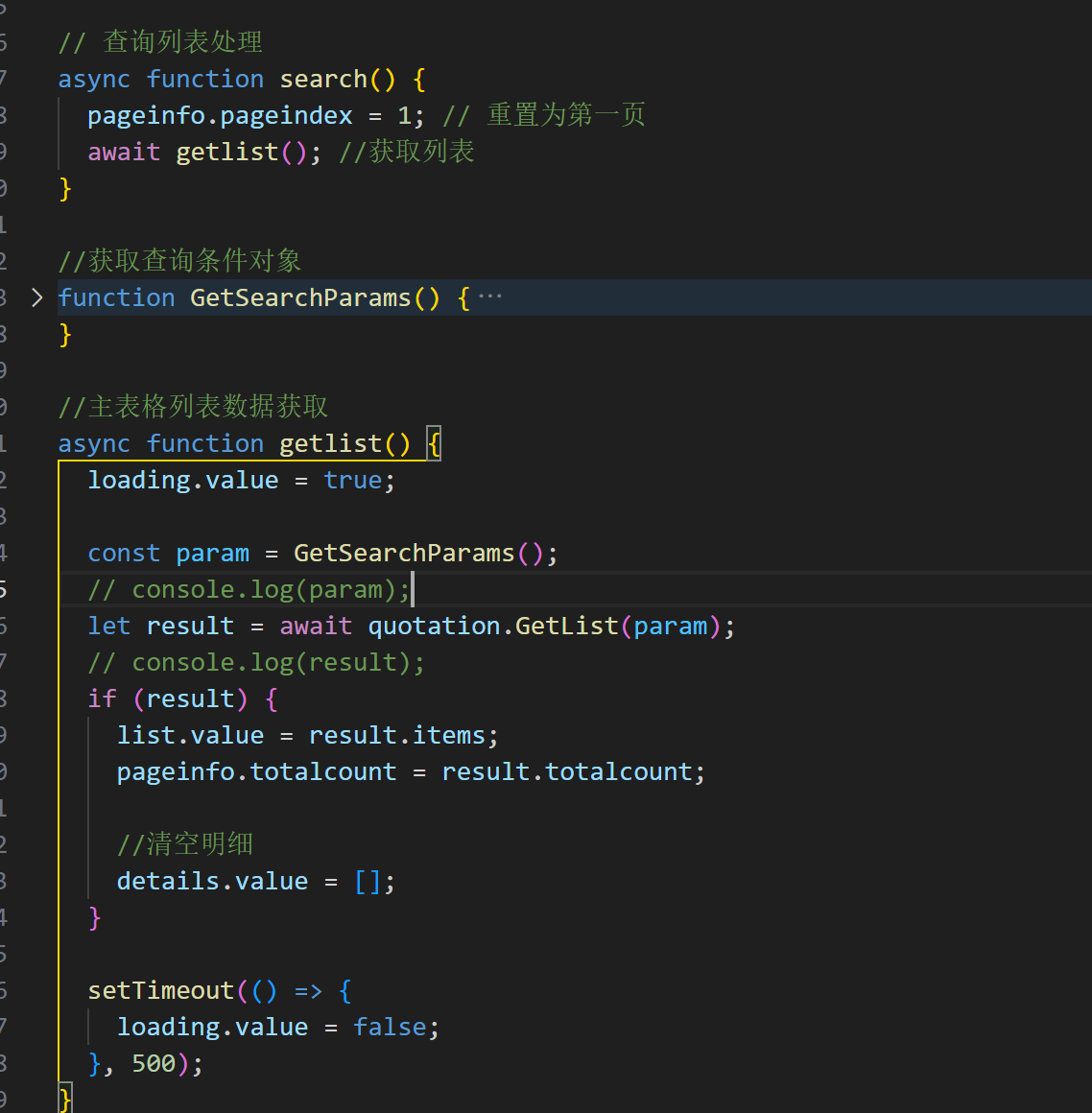 其中主列表通过获取查询区域控件的条件,通过API进行数据获取,绑定到表格列表即可。