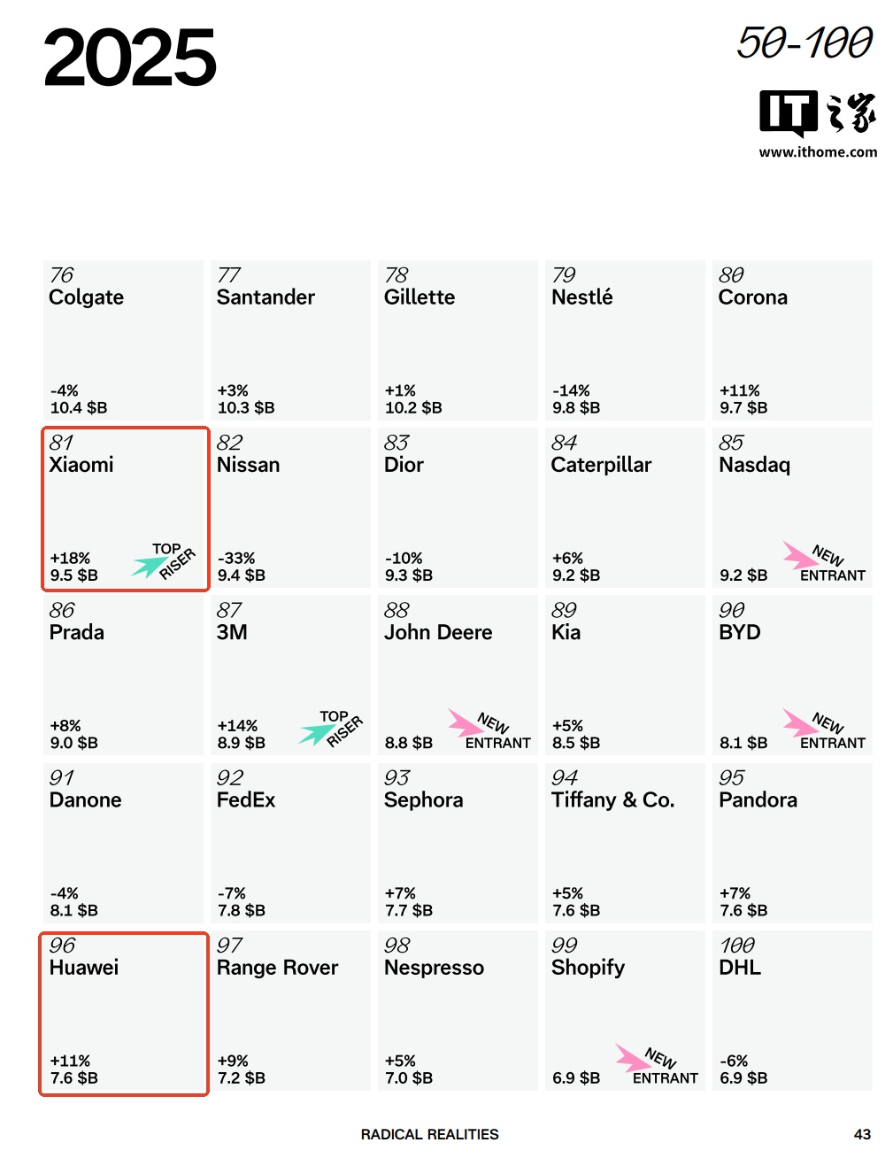 《Interbrand 2023 全球品牌百强:苹果、微软前二,小米第 87、华为第 92》