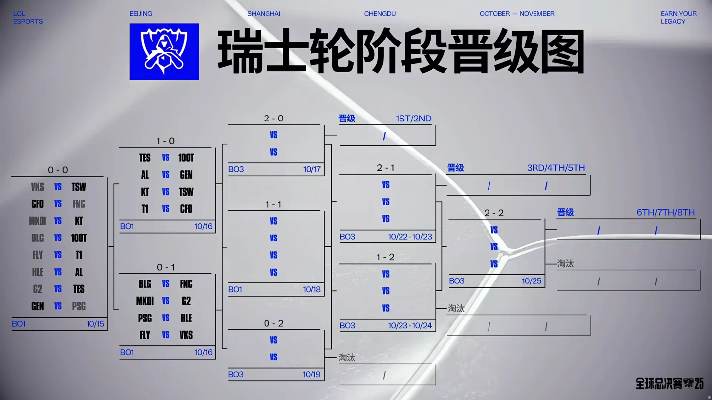 LOL S15 总决赛瑞士轮的第二个比赛日将在今日 13:00 拉开帷幕,TES 将在 16:00 面对 100T、AL 则将于 18:00 再遇 LCK 另一劲旅 GEN、BLG 会在 19:00 场对决 FNC。