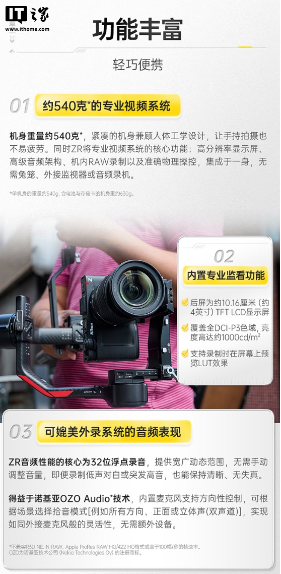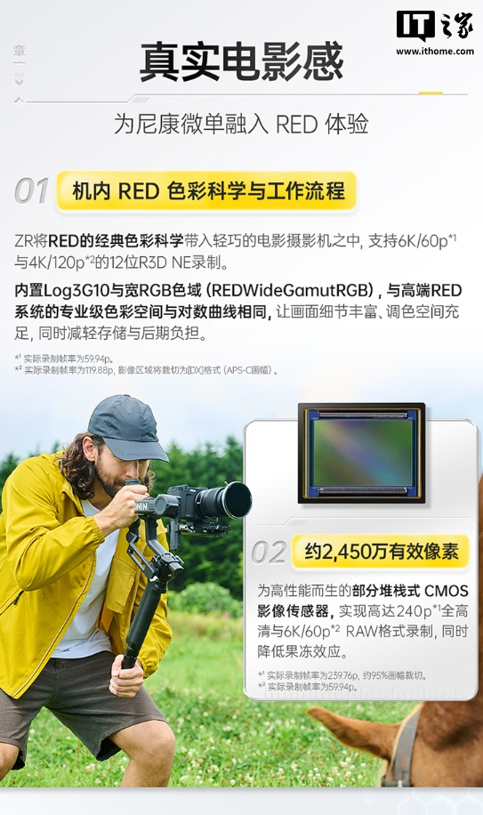 alixixi 10 月 16 日消息,尼康 ZR 全画幅相机现已开售,为电影、高阶影像制作及创摄者打造,融合了尼康及其子公司 RED 技术,搭载 2400 万像素部分堆栈式 CMOS,单机身售价 13999 元。