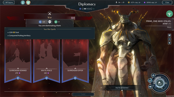 投降要求 - 要求帝国投降并支付特定数量的尘埃作为贡品。