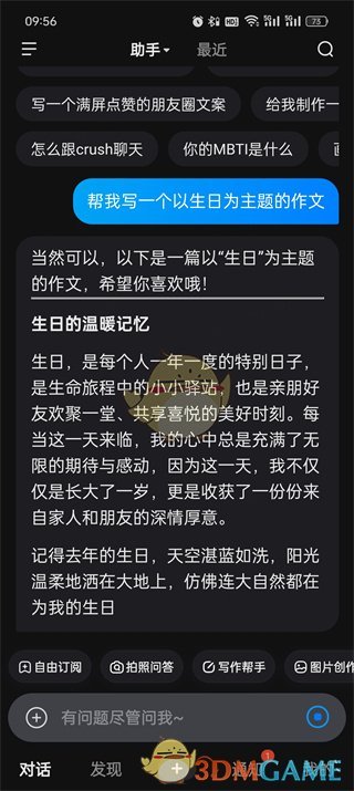 用户可通过打开文心一言APP,在对话输入框输入写作主题(如“写一篇科技论文”“创作故事大纲”),或直接选择首页「写作」功能入口,从预设模板中挑选类型,输入关键词、风格要求(如正式、幽默)及字数限制,点击「生成」即可获取AI创作的初稿,支持进一步修改优化。