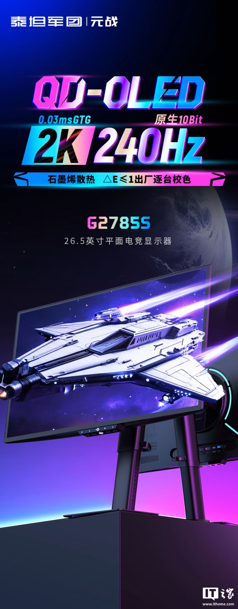 alixixi 10 月 17 日消息,泰坦军团现已在京东上架一款型号为“G2785S”的 26.5 英寸显示器,该机主打 2K 240Hz,定价为 1999 元。