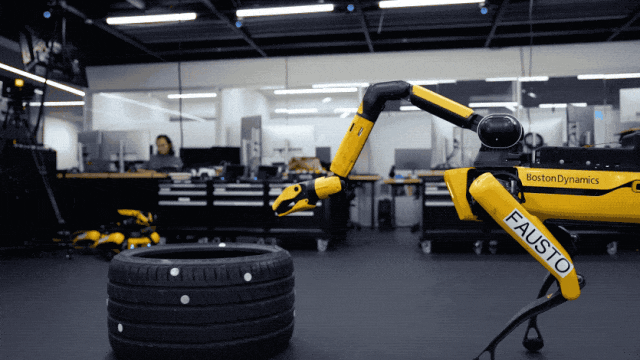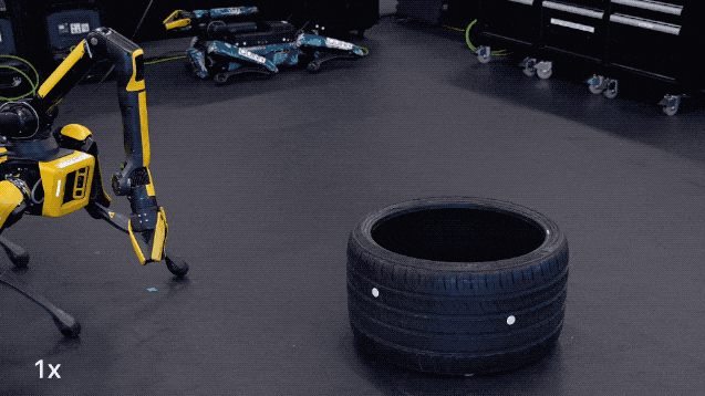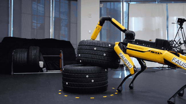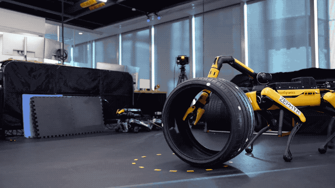 在波士顿动力人工智能研究所的最新方法 —— 结合采样与学习的动态全身操作中,波士顿动力的机器狗 Spot 最快仅用 3.7 秒就能搬起轮胎。