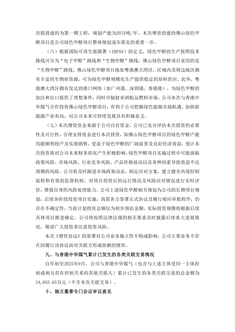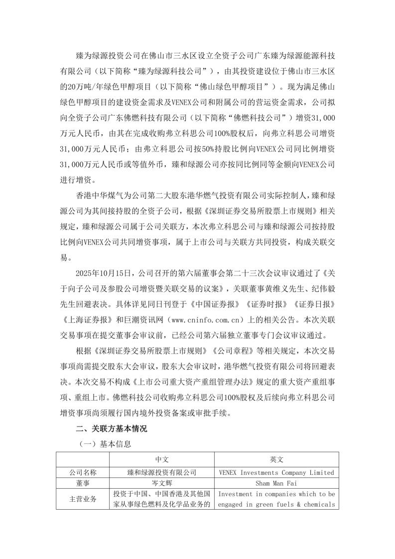 近日,佛燃能源发布公告称,公司拟向全资子公司广东佛燃科技有限公司增资3.1亿元,用于收购弗立科思公司100%股权后,再向其增资3.1亿元,并由弗立科思公司按50%持股比例向VENEX公司同比例增资3.1亿元或等值外币。VENEX公司为佛燃能源与香港中华煤气合资设立,不纳入双方合并报表范围。增资旨在满足佛山绿色甲醇项目的建设资金需求及VENEX公司的营运资金需求。
