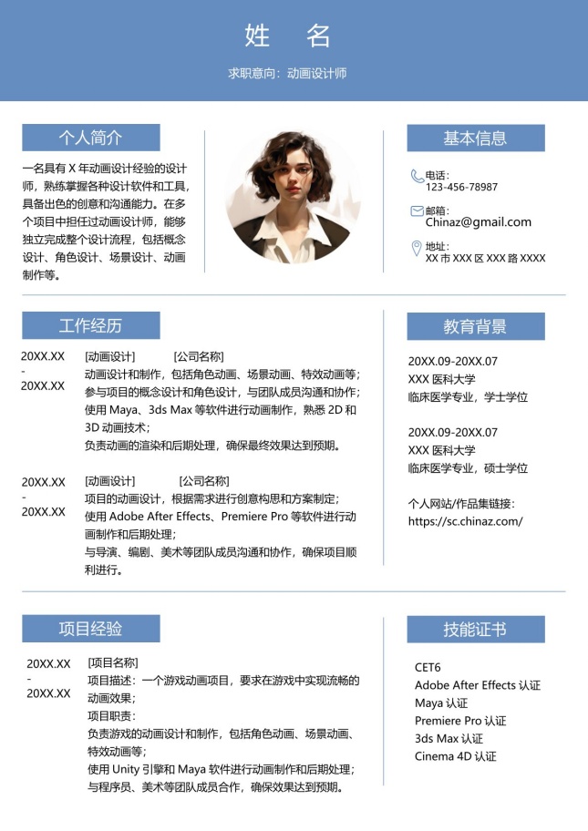 3D动画师个人简历模板,适用于3D动画师、通用简历、求职简历、个人简历、商务简历、找工作简历、竞聘简历等相关的个人简历主题设计应用。