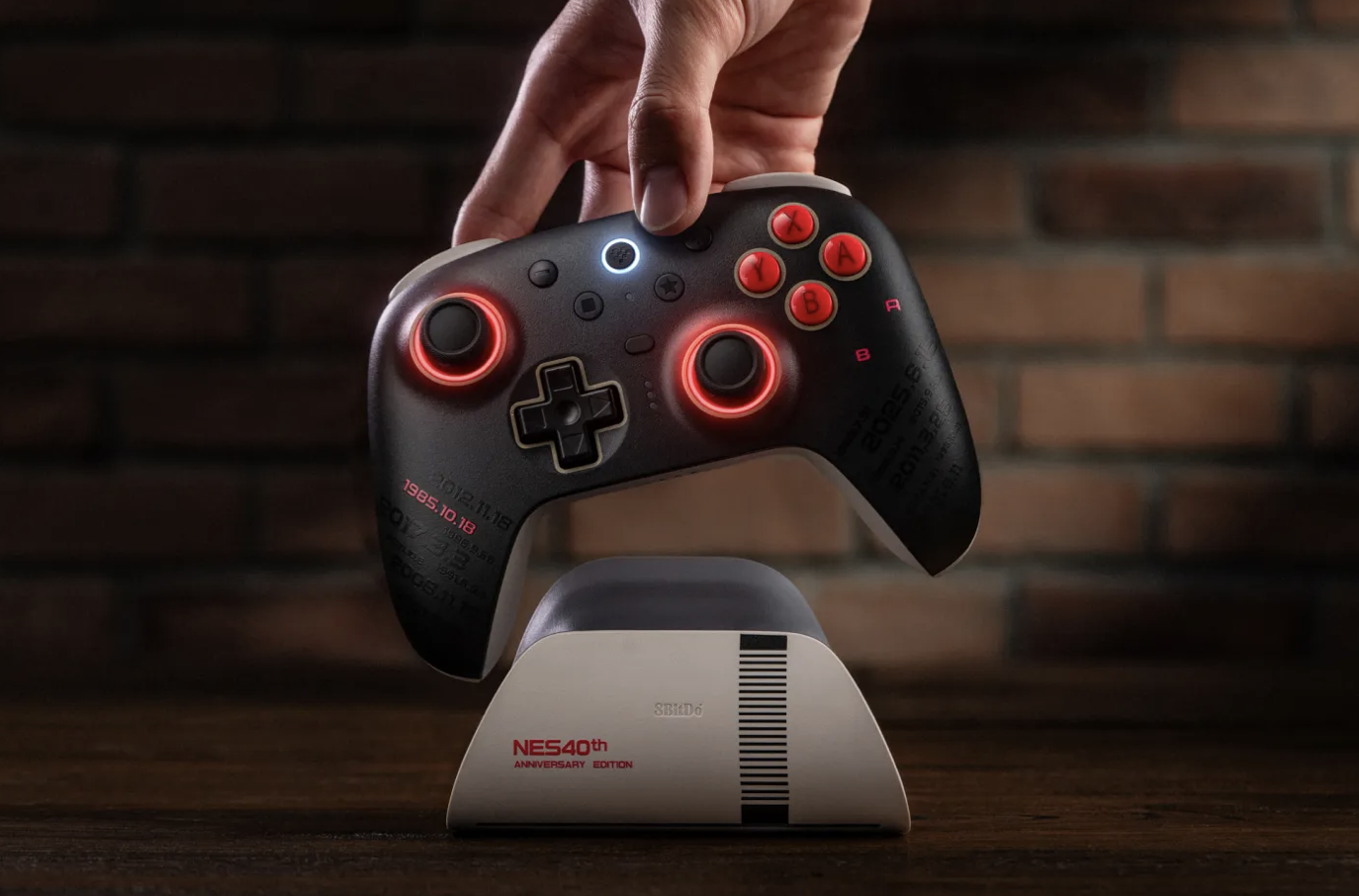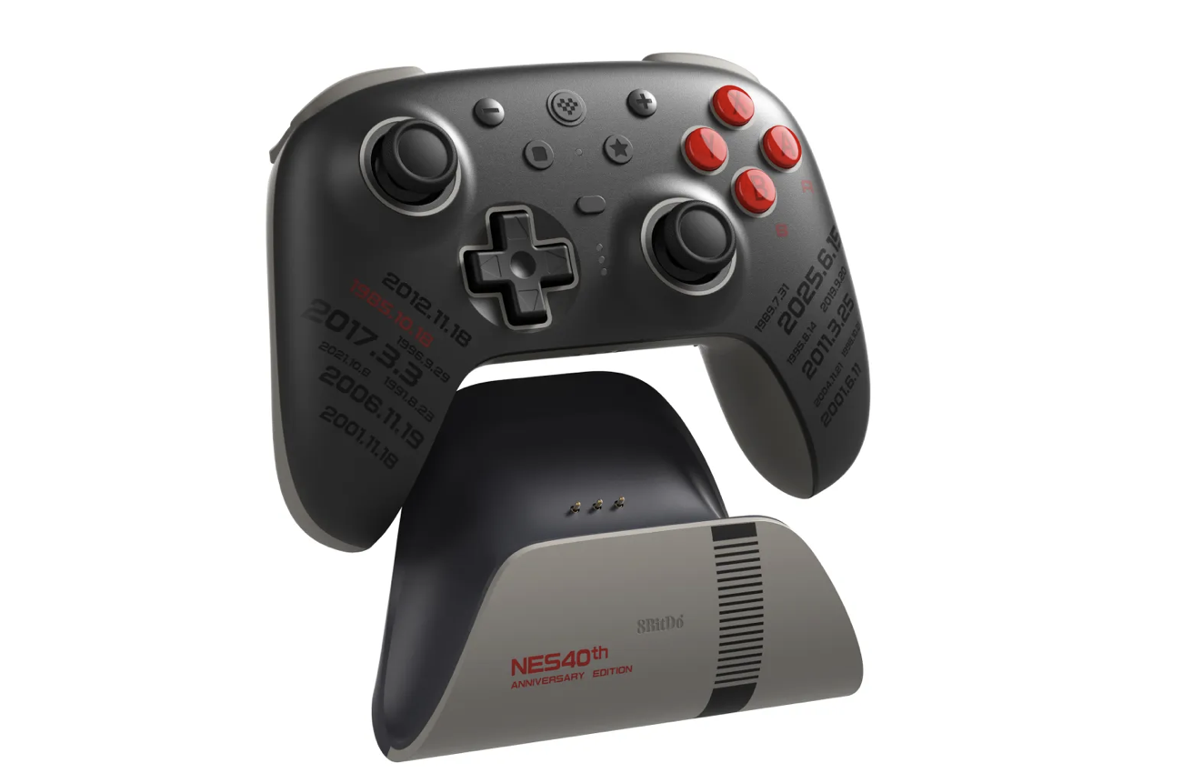 这款手柄相对于标准版本主要调整外观,采用经典复古黑灰设计,辅以红色按键,手柄握把上印有 8BitDo 与任天堂重要产品发售年份。售价 79.99 美元(现汇率约合 567.5 元人民币),随附 Retro Receiver(可无线连接原版 NES)及标准 2.4GHz 适配器。全球限量 1985 套,预计 11 月 15 日发售。
