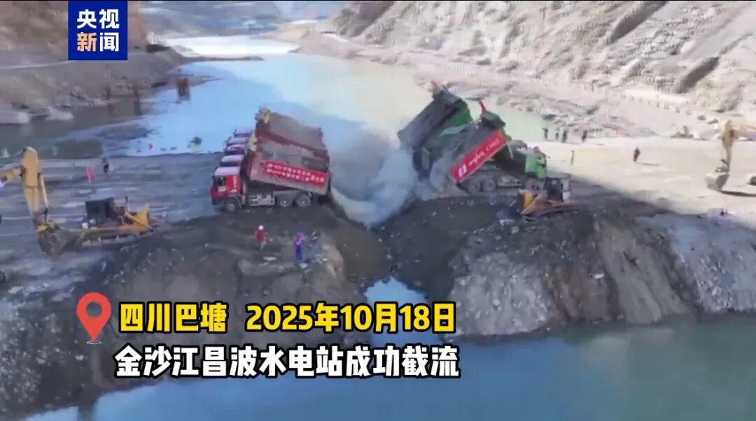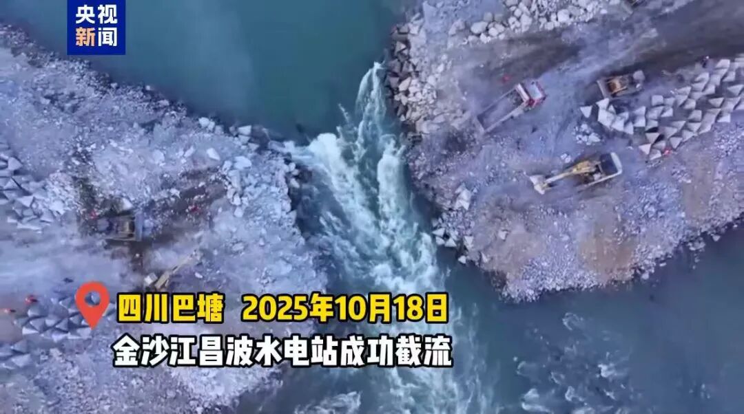 alixixi 10 月 19 日消息,据央视新闻报道,10 月 18 日,国家“十四五”重大工程,金沙江上游昌波水电站成功实现大江截流。昌波水电站是国内在建规模最大的调压室群水电项目,此次大江截流的关键节点突破,标志着金沙江上游清洁能源基地建设迈出了关键一步。