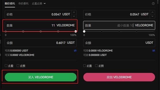 9、输入VELO数量,点击买入VELO即可