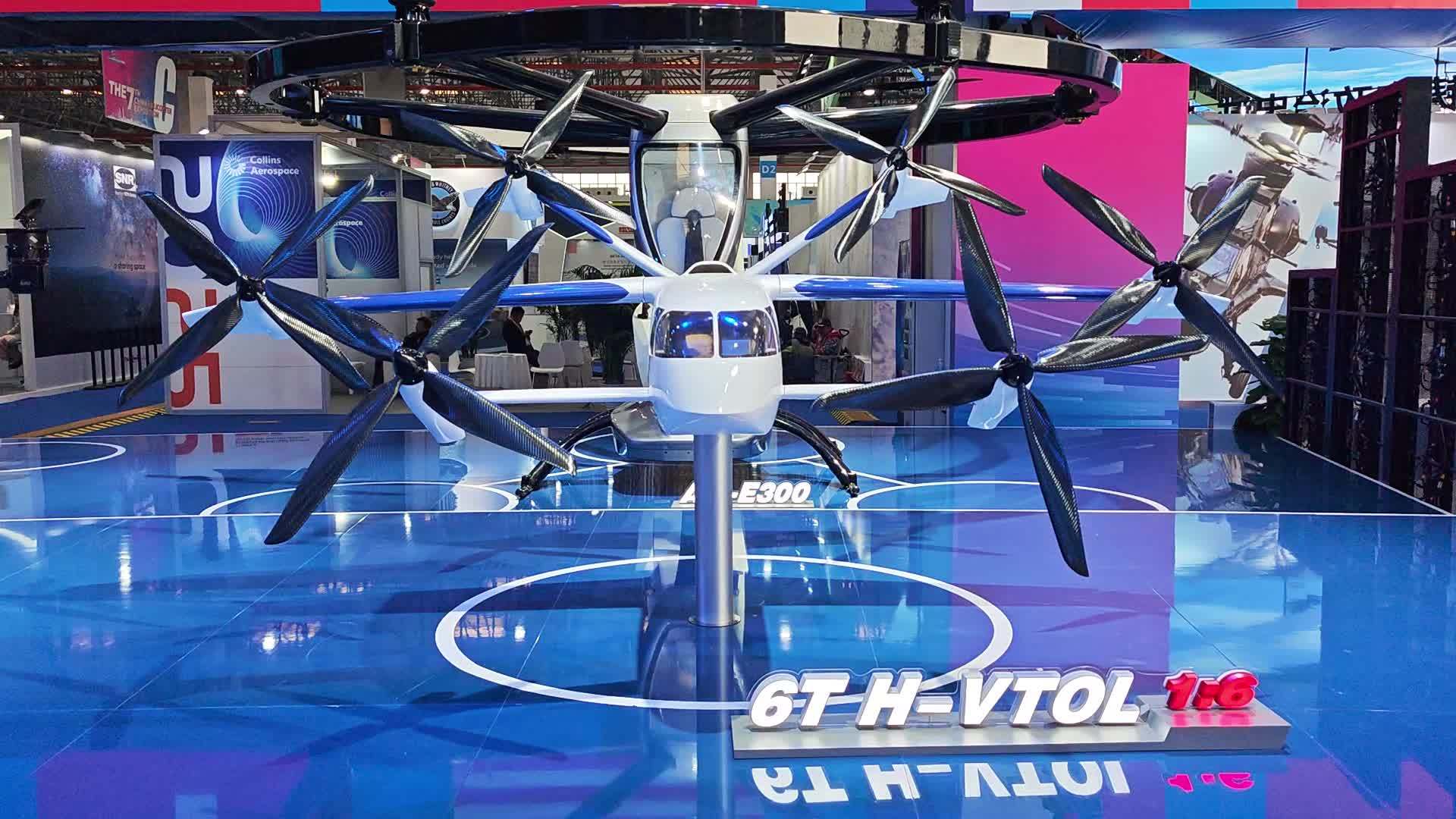 alixixi 10 月 20 日消息,在上周举行的第七届天津直升机博览会(2025 天津直博会)上,一款大型远航程混动垂直起降飞行器首次亮相。