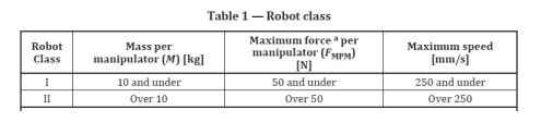 新版本引入了两个机器人类:Class 1(适用于低负载的机器人,基于合理预见误用设计);Class 2(适用于负载较大的机器人)。CLASS I和CLASS II机器人的分类区分标准简述见下表。需要注意的是,机器人只要不满足Class I中的任意一个条件,就会被归类为Class II机器人。