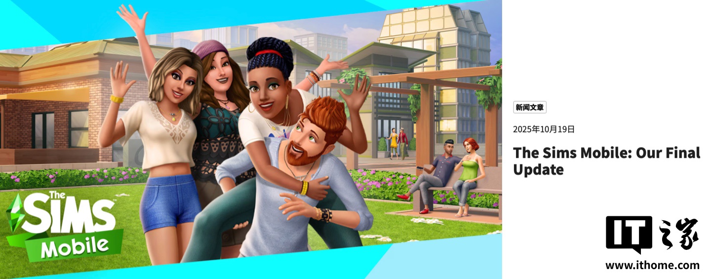 alixixi 10 月 21 日消息,EA 宣布将在 2026 年(明年)初正式关闭《模拟人生:移动版(The Sims Mobile)》,为这款推出近八年的手游画上句号。