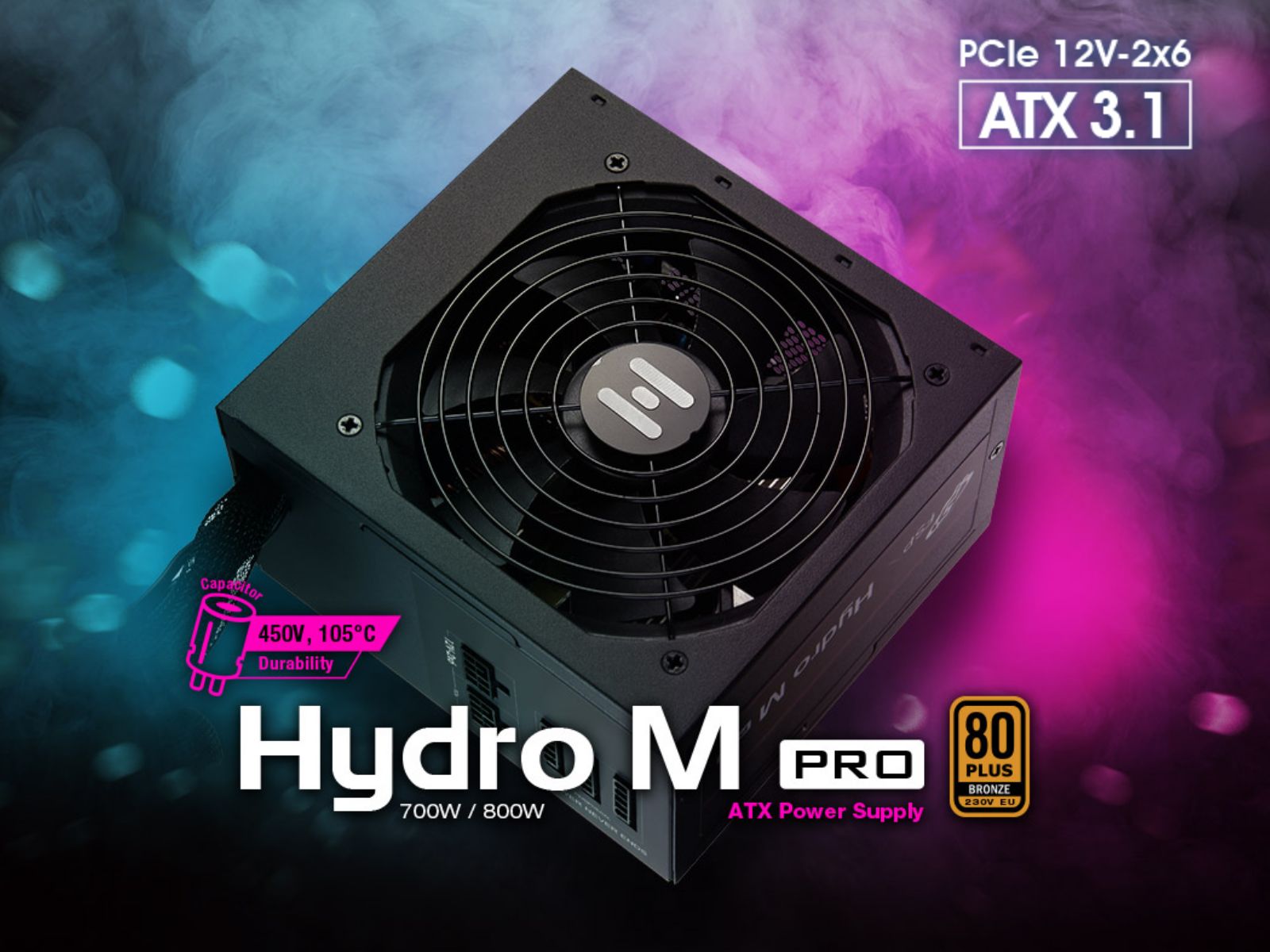 与老版本一样,Hydro M PRO (ATX3.1) 可选 700W / 800W 两种功率级别。其采用标准 140mm 长度 ATX 外形规格,配备 450V 105°C 电容,采用单路 +12V 设计 DC-DC 拓扑,搭载 120mm HYB 轴承风扇。