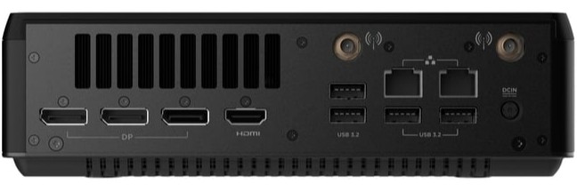 外部 I/O 上,EN275060TC 正面提供 2 个雷电 4、1 个 USB-A 10Gbps、1 个二合一音频插孔;反面则包含 3 个 DP 2.1b、1 个 HDMI 2.1b、2 个 2.5GbE RJ45、4 个 USB-A 10Gbps 和一对 Wi-Fi 天线插孔。