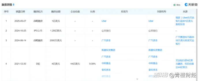 海外市场的争夺同样针锋相对。文远知行与Uber刚宣布完合作深化,将Robotaxi服务覆盖全球15座新增城市。据天眼查显示,今年5月Uber对其追加1亿美元股权投资;几乎同时,小马智行宣布与Uber也达成战略合作,Robotaxi服务和车队将在今年下半年接入Uber平台,并在中东市场率先启动。